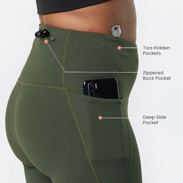 Olive-coloured solid high-rise ankle length leggings with 2 pockets, has an elasticated waistband and slip-on closure
